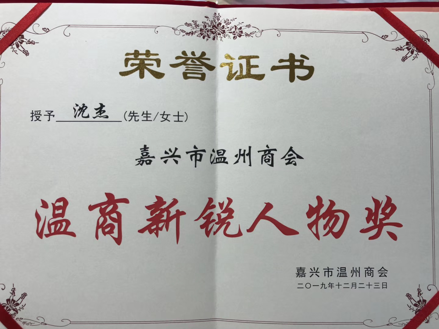 當(dāng)天,現(xiàn)場舉行了嘉興市溫州商會新生代聯(lián)合會就職慶典,我司總經(jīng)理沈杰當(dāng)選溫州商會副會長及新生代聯(lián)合會執(zhí)行會長,同時(shí)也榮獲溫商新銳人物獎(jiǎng)。